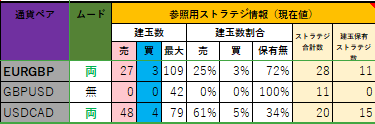「EURGBP、GBPUSD、USDCAD」について参照用ストラテジ情報(現在値)を以下に掲載します。