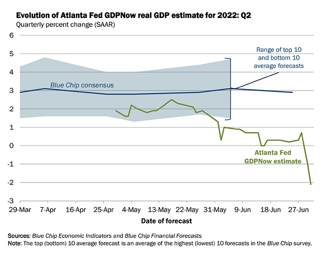 米国GDP NOWがさらにマイナスどんっ!で、既にリセッション入り!?