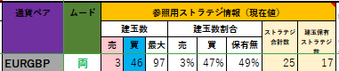 EURGBPに関する参照用ストラテジのうち17個のストラテジーが建玉を保有しており、その建玉の内訳は「買建玉が46個、売建玉が3個」となっています。