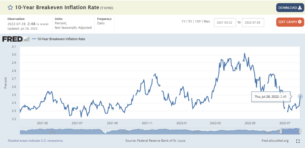 このブログでも何度か取り上げた米国予想インフレ率(ブレイクイーブンインフレ率)を見てみましょう。