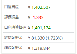 以下は実践トレードにおける現在の口座状況になります。