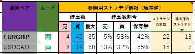 再評価後の有効ストラテジーを発表!EURGBPとUSDCADの参照用ストラテジ情報(現在値)は以下のとおりです。両通貨ペアとも売建玉と買建玉が両立しているため、現在、ストラテジは有効にできません。 ![]() 現在、有効にしているストラテジはありません。 |