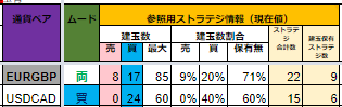 EURGBPに関するストラテジが8個であり、前回と同内容です。また、USDCADに関するストラテジが4個になり、前回より2個増えました。 参照用ストラテジと有効対象ストラテジーの関係については「コチラ」を確認してください。 |