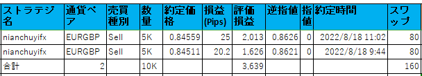 ストラテジ名 通貨ペア 数量