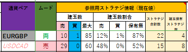 下表は、現在のEURGBPとUSDCADの参照用ストラテジ情報です。